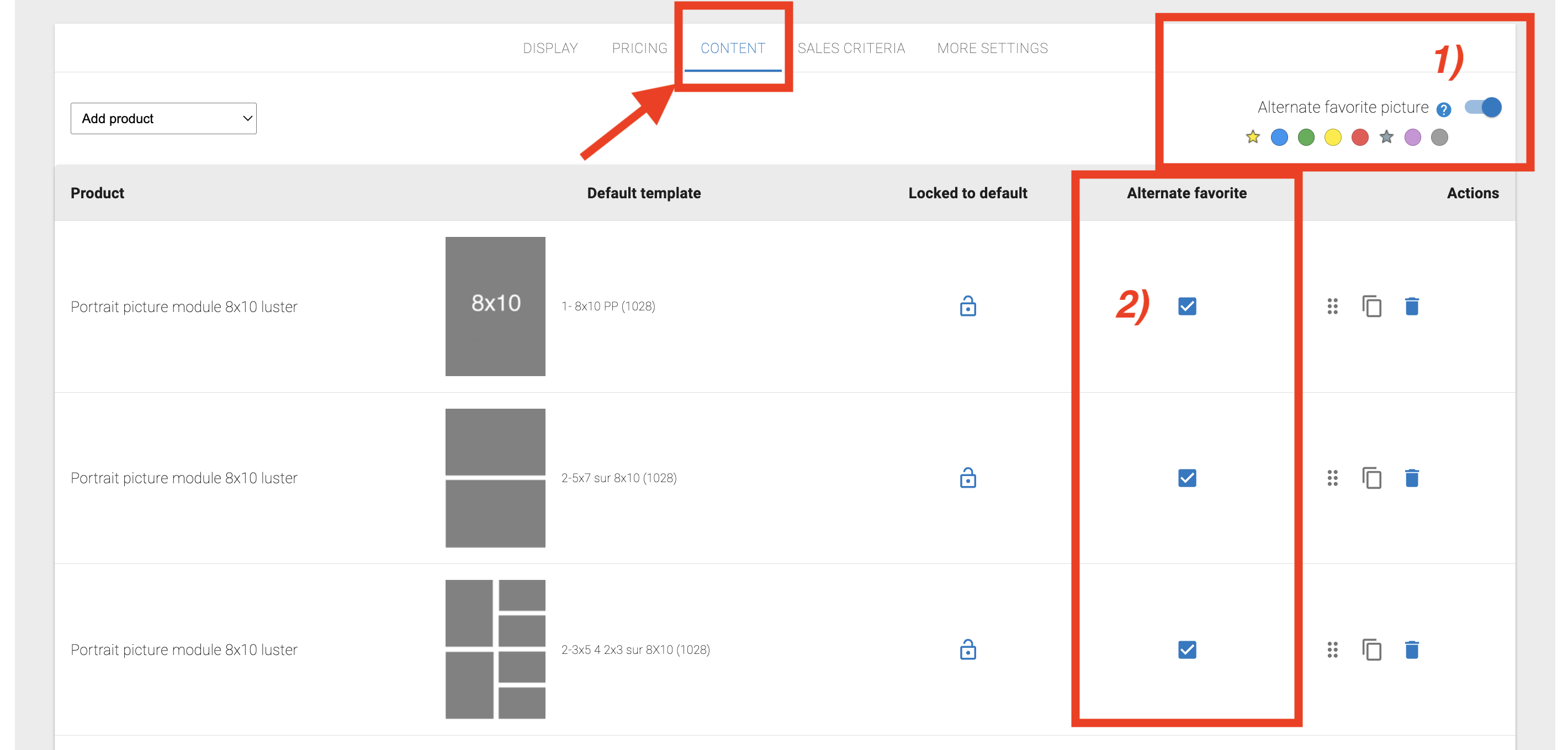 2) à côté de chacun des éléments de l'ensemble pour lesquels vous désirez que les photos soient alternées.