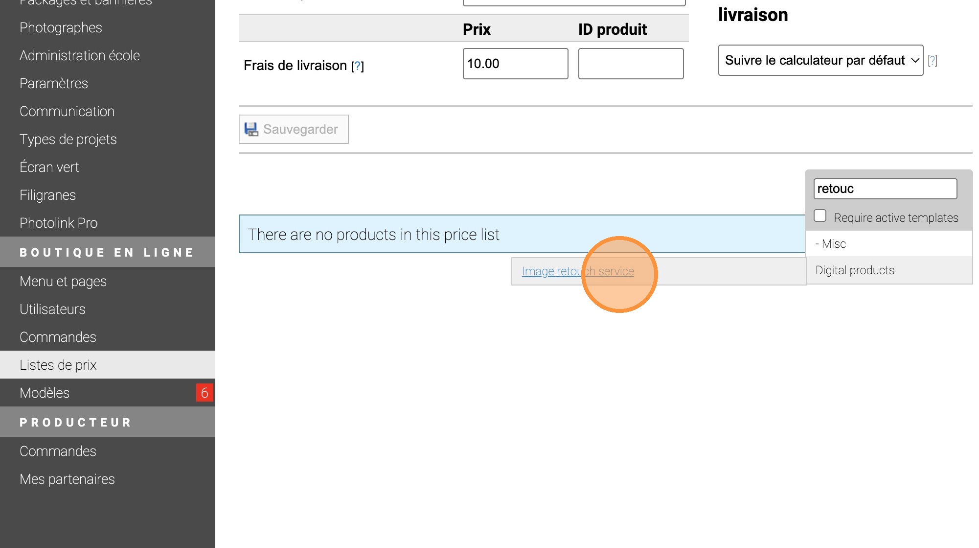 6. Descendre à Digital Products et cliquer sur "Image retouch service"