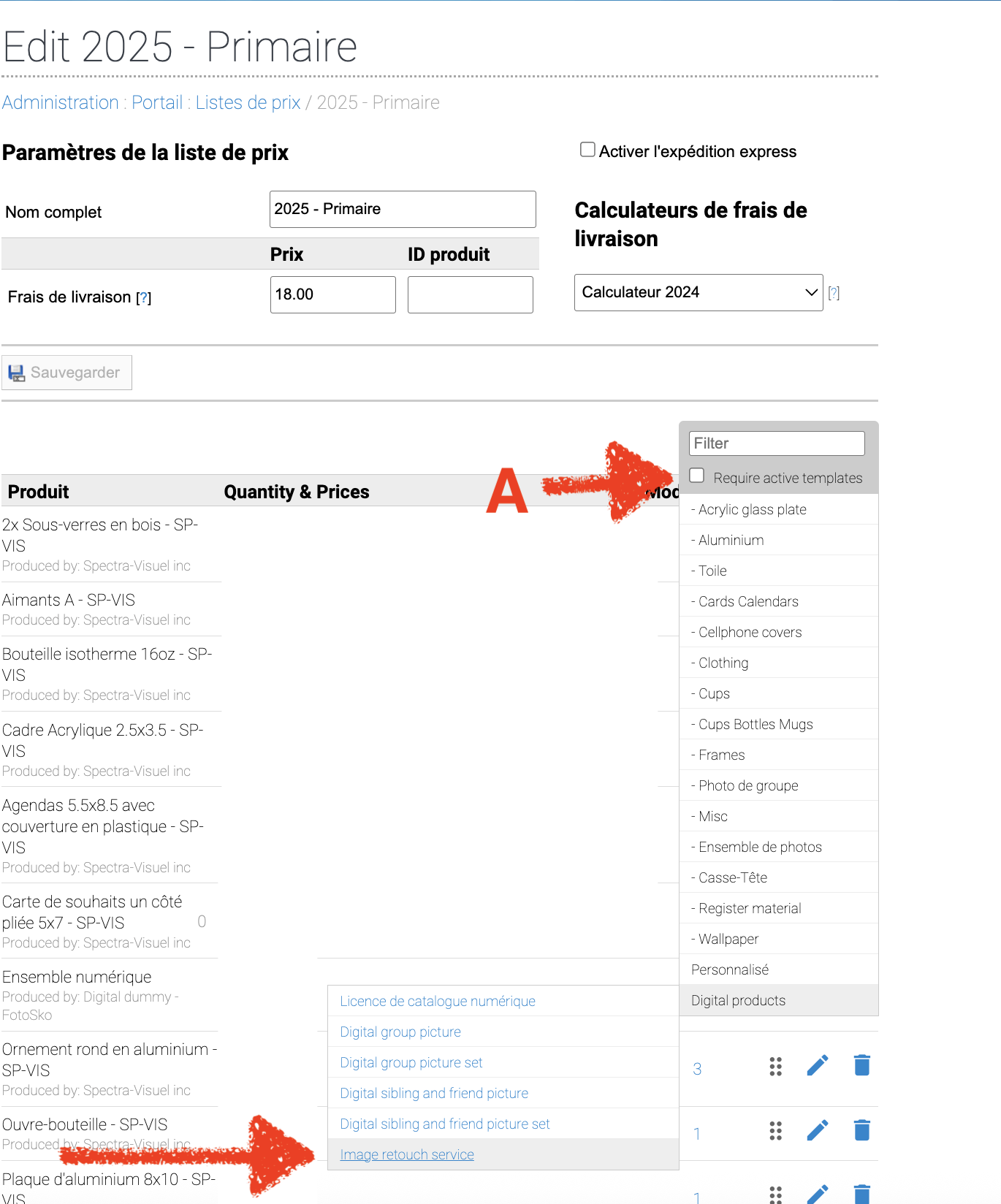👉 le système lui propose automatiquement les options de retouche disponible